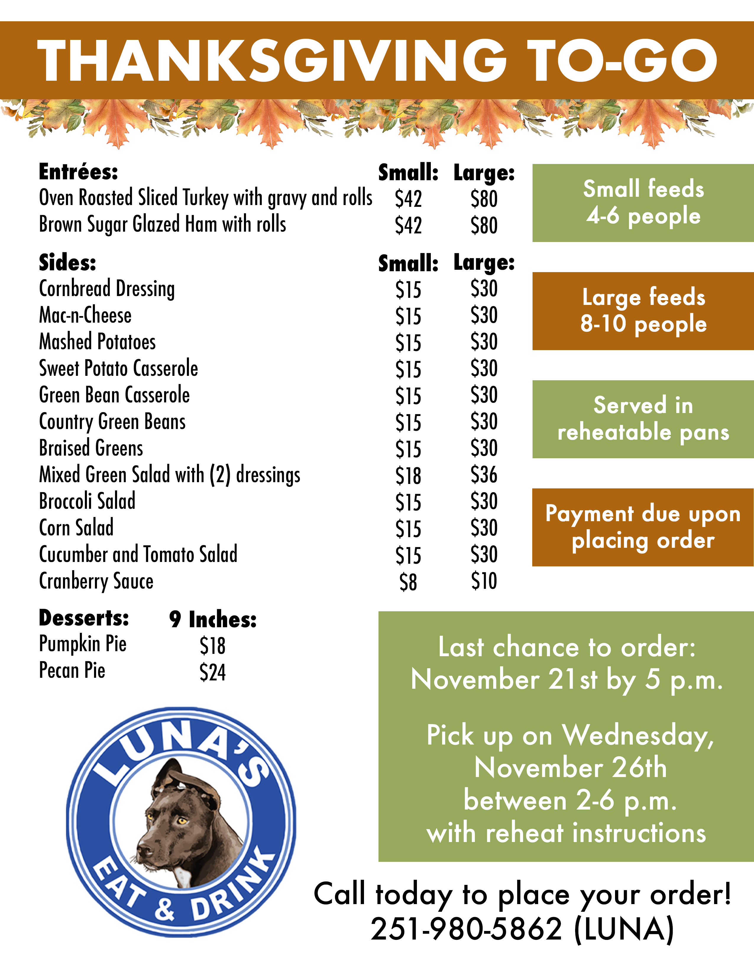 Enjoy great German food, modern polka music by The Brats, Stein hoisting, games, and tons of Oktoberfest-style beers and german wines. Tickets are $15 per person. It will include your 1st beer or wine, a glass, a Luna’s koozie, and entertainment.